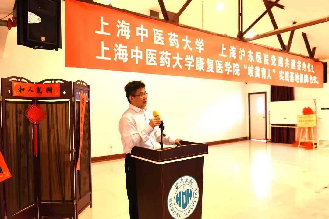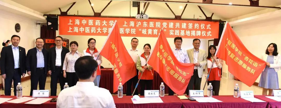庆祝建党百年,奉献社会、服务社区居民,5月8日,在国际红十字日到来之际,我校康复医学院党总支、上海中医药博物馆党支部、上海市中医老年医学研究所党支部、附属龙华医院骨伤学科党支部与上海沪东医院党支部党建共建签约仪式暨义诊活动举办。我校副校长王拥军,浦东新区沪东街道党工委书记苏珏旻、副书记黄维、副主任翁杰峰,我校参加党建共建党组织负责人,上海绿谷沪东医院管理公司总经理张辉、上海沪东医院党支部书记朱德新、院长邹冰川以及各单位师生志愿者共计50余人参加了本次活动。