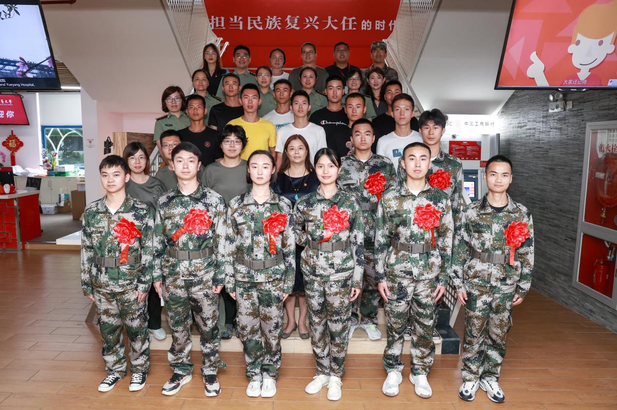 学工部(研工部、武装部)部长沈漫宣读新兵名单。中药学院龚诗沣和康复医学院杨林分别作为新兵代表发言,他们表示能够在建党百年之际步入军营,内心无比激动和自豪,会珍惜身穿戎装的机会,在军营里书写绚烂、无悔的青春篇章。公共健康学院杨曙鸿作为退伍士兵代表发言,他积极响应学校号召担任军训教官,将部队的红色基因和优良作风通过军训传递给参训学生。各学院负责人员向新兵颁发入伍通知书、佩戴大红花和发放慰问品。