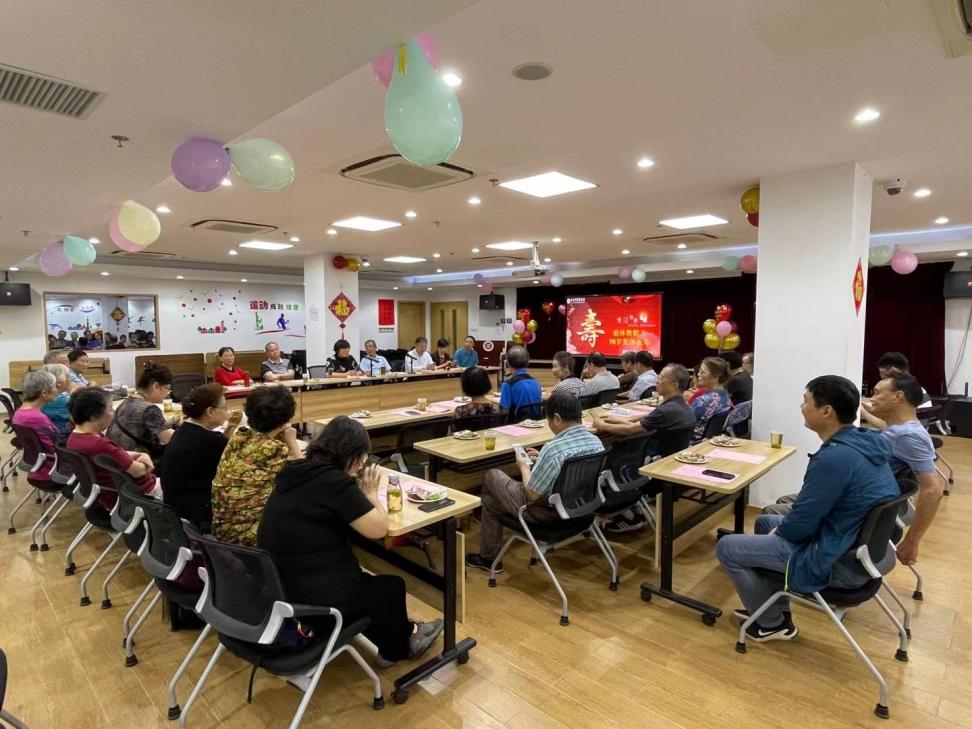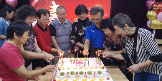 “祝你生日快乐……”“最美不过夕阳红……”熟悉的旋律在活动室中响起,现场人员一起齐声为寿星唱生日歌、点蜡烛、切蛋糕,相互送上美好祝福。