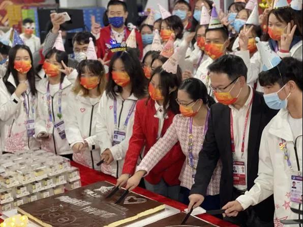 “大家好,我是一名来自中药学院的小叶子,很高兴能在进博会期间和其他小叶子们一起庆祝生日。进博会的前期培训及现在的实操上岗,小叶子们付出了汗水和心血,收获了肯定和快乐。非常感谢进博会的工作人员为我们筹备这一次的集体生日会,让小叶子们能够一起庆祝生日!一同担任志愿者是缘分,每位小叶子在这里都得到了锻炼、收获了友谊;一同庆祝生日是惊喜,每位小叶子在这里都的到了家庭般的温馨、朋友间的友爱。生日的意义不是提醒我们又长大一岁,而是告诉我们要学会成长为一个出色的人。”她说道。