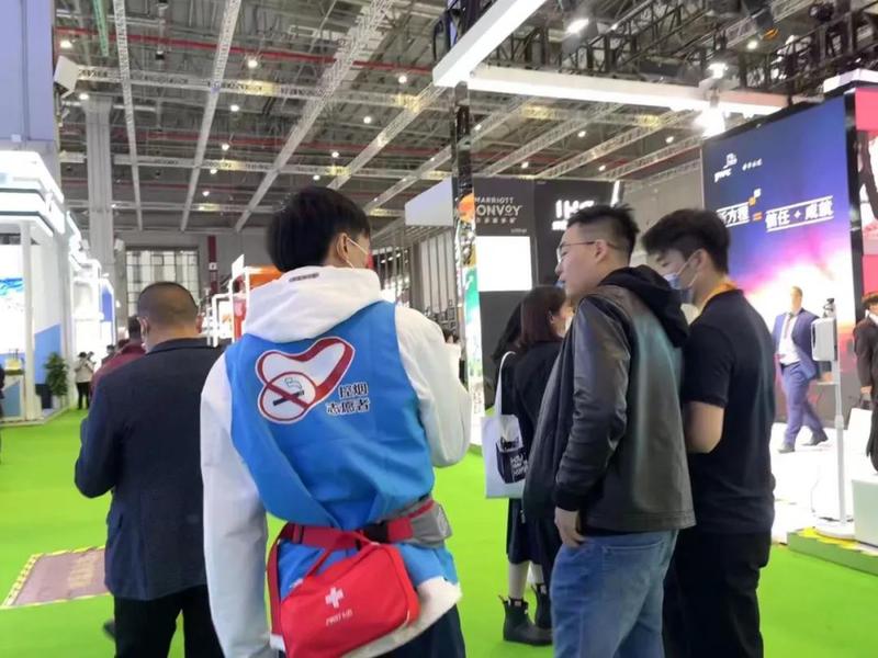 爱国卫生组负责提醒参展人员口罩佩戴情况与吸烟管理,在国内外新冠疫情仍不稳定的因素下,口罩的佩戴能有效防范疫情的发生于扩散,其次,参展商在一个干净而清新的环境下才会融洽商谈合作,香烟管控也是必不可少的。他们每天都要在场馆内不停的巡逻走动,他们用双腿和双眼筑起卫生的屏障。