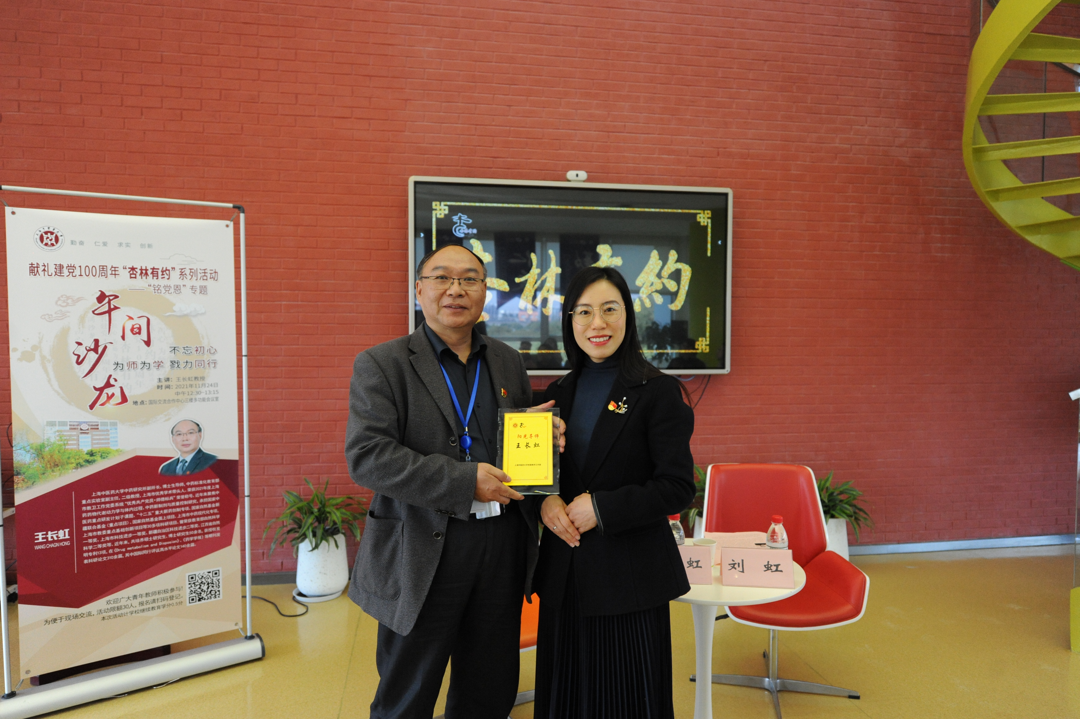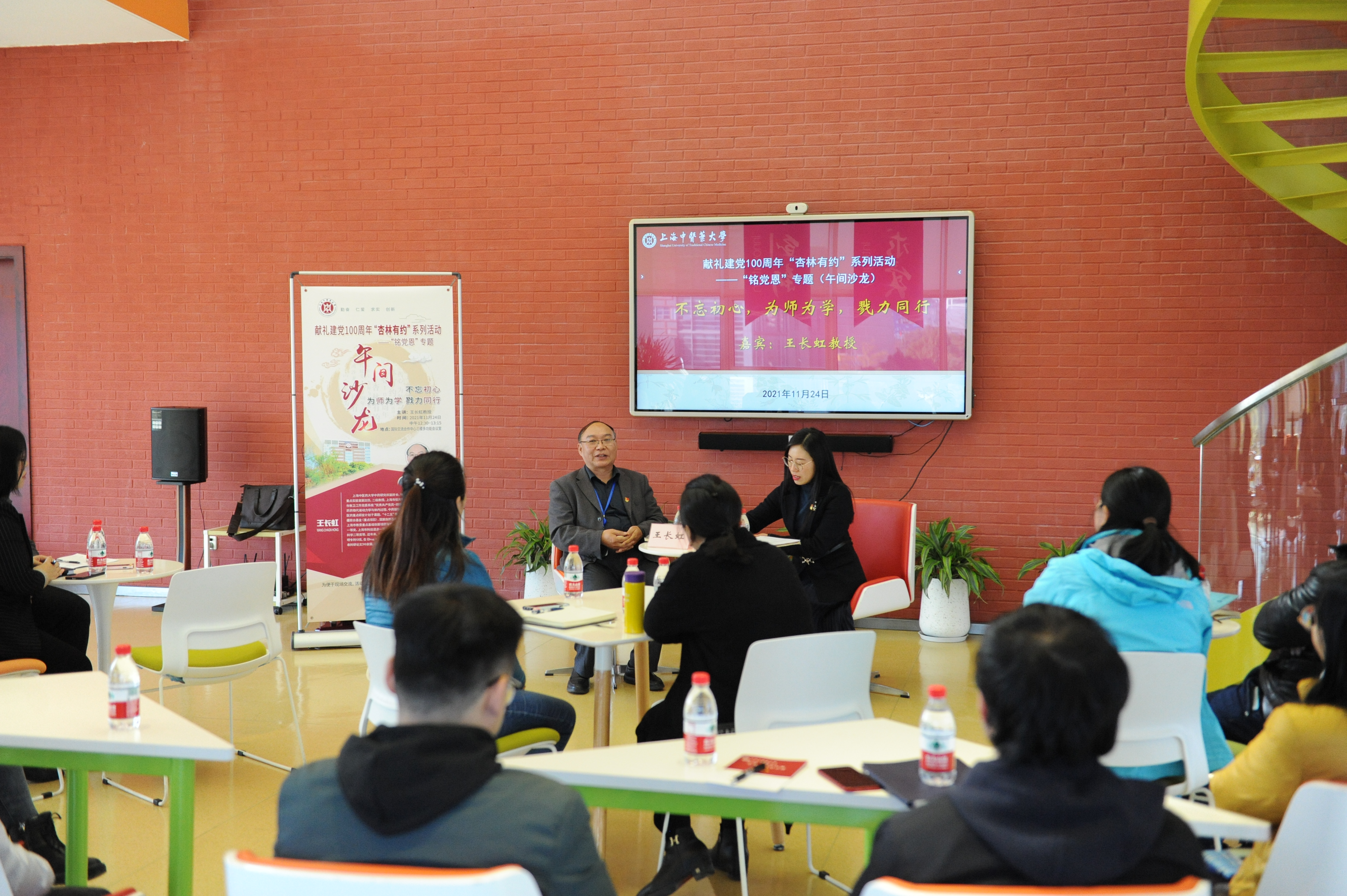 11月24日中午,我校献礼建党100周年“杏林有约”系列活动之“铭党恩”专题午间沙龙在国际交流合作中心三楼多功能厅举行。我校中药研究所副所长王长虹教授受邀和青年教师们分享“为人为师为学”的体会和感悟。活动由校党委教师工作部副部长刘虹主持。