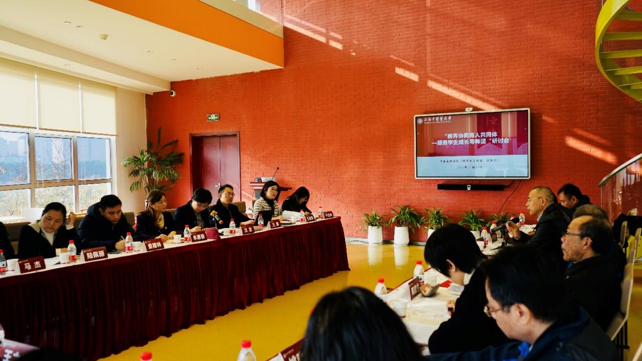 为深入学习贯彻习近平新时代中国特色社会主义思想和党的十九届六中全会精神,推动全国高校思想政治工作会议精神引向深入,12月10日,“跨界协同育人共同体——服务学生成长导师团”研讨会在学校国际交流合作中心三楼多功能厅召开。全国思想政治教育领域知名专家,复旦大学高国希教授、市教卫系统法宣办常务副主任卢天琳、我校原党委书记张智强、致远导师团团长陶建生等专家应邀参加会议,我校党委副书记、副校长朱惠蓉,教务处、学工部(研工部)、各二级学院学生工作负责人出席会议。