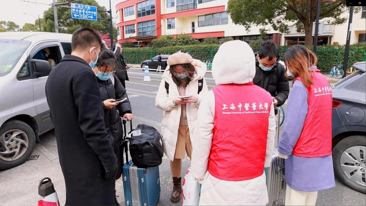 返校当日,上海气温降至冰点以下,一批身着红马甲的志愿者们为寒风中返校的学生们送上了上中医的第一份温暖。校团委通过招募,安排数量充足的志愿者参与服务,在门岗、查验点、核酸检测点,志愿者们为返校学生实时指引、协助办理、寄存和看护行李,做好各项贴心服务。