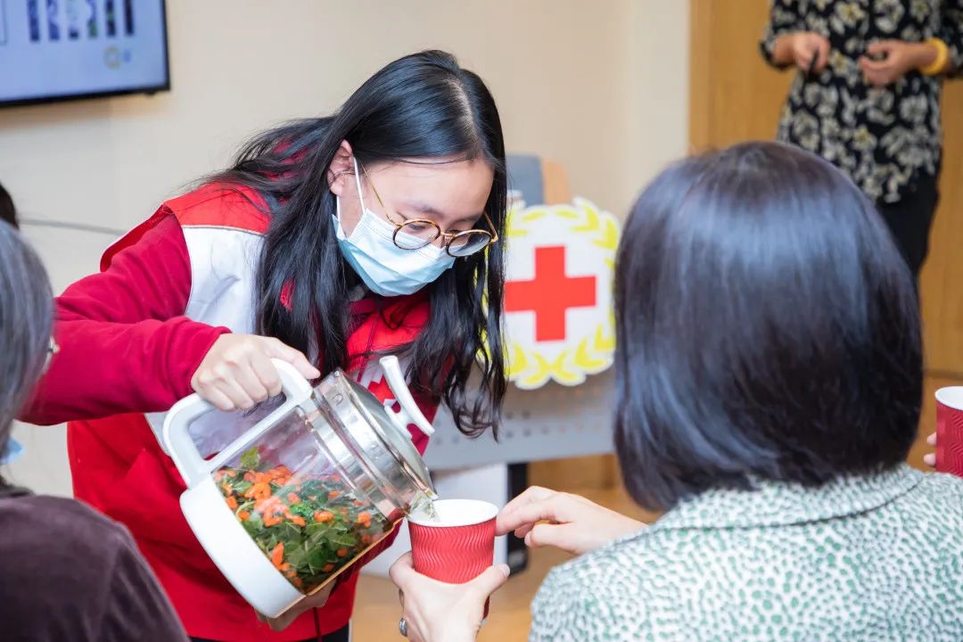 现如今,作为上海市红十字青年网络核心骨干,她思考的更多是如何扩大志愿服务人群,整合各方资源,为同伴、高校和社会贡献出自己的力量。2021年末,作为杏林学子,她充分发挥学校中医药特色及自身针灸推拿专业优势,参与策划了“青长相伴,健康同行”高校红十字青年为老服务之健康知识进社区项目,为老人们讲授中医养生知识,教授老年健身操,受到了社区老年人的好评,发挥青年大学生在老龄服务中的积极作用。
