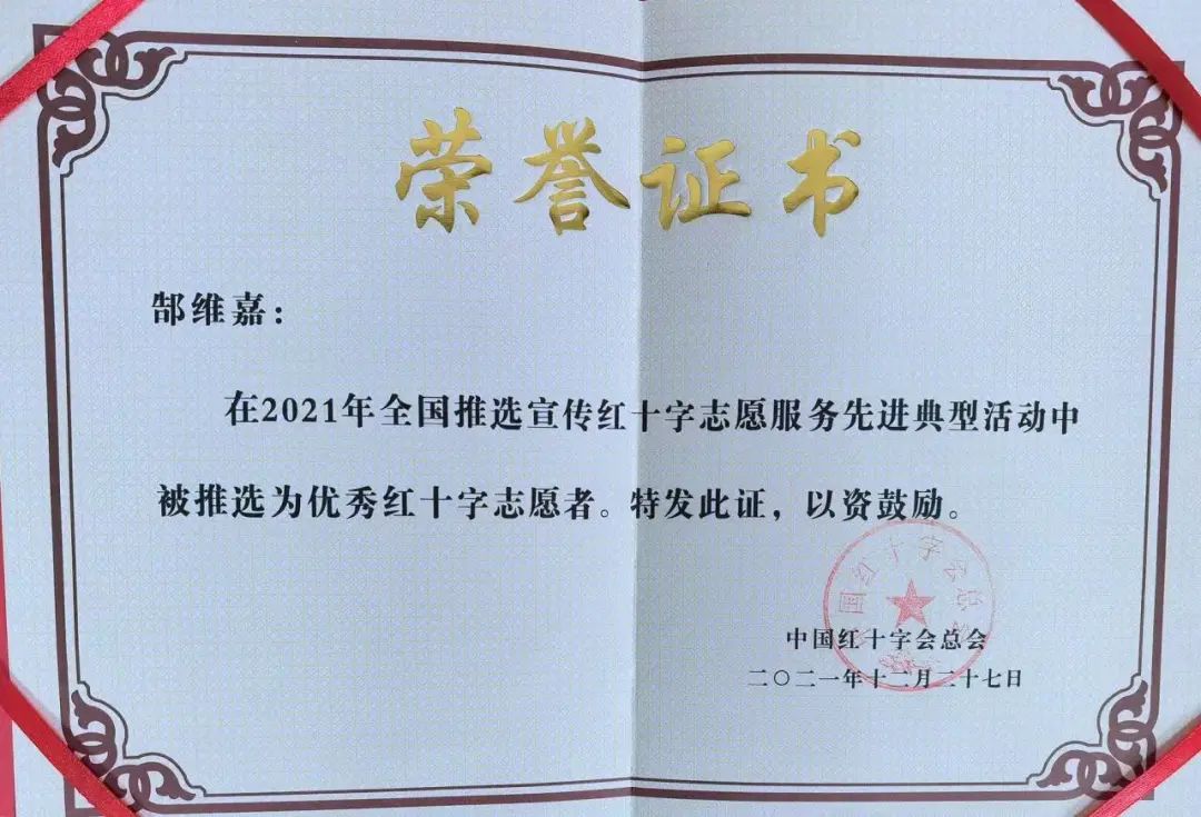 在如愿考入开云电竞官网下载安卓后,郜维嘉立即加入了学校的红十字会急救部,随后成为了学校红十字会学生分会会长,她积极参与各类志愿服务活动、无偿献血、加入中华骨髓库、参与人道法师资培训、预防艾滋病主持人培训,利用医院挂职锻炼的机会,在临床上近距离去观察、理解病患。