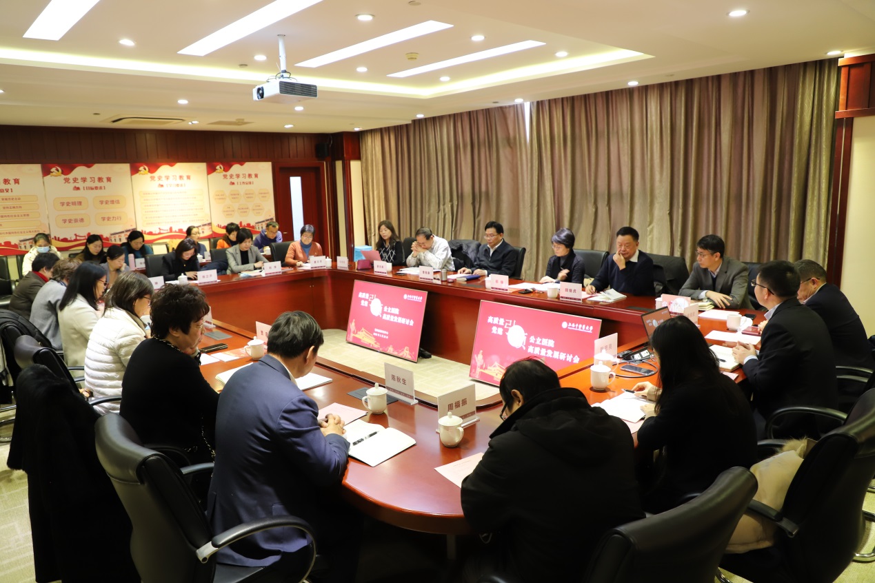 2月23日,高质量党建引领推动公立医院高质量发展研讨会在我校举行。校党委书记、党的建设研究中心主任曹锡康,党委副书记、副校长、党的建设研究中心副主任朱惠蓉,党委副书记、纪委书记许铁峰,上海市教卫工作党委一级巡视员郑锦,上海市党的建设研究会副秘书长蔡鸿德,上海市教卫党委系统研究会顾问顾继虎,《上海党史与党建》编辑部主任贾彦,《上海宣传通讯》编辑部主任吕东卉等出席。朱惠蓉主持会议。