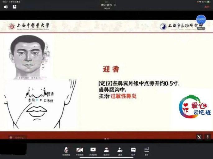 4月10日星期日晚,上海市气功研究所副主任医师陈春艳老师为云托班的学生开展了关于《预防新冠病毒,中医穴位来帮忙》的线上科普课程。课程中,陈春艳老师结合简便易学、安全有效适合疫情防护的中医穴位,深入浅出地介绍了疫情期间可能出现的身体不适和情绪波动等常见问题的穴位保健,并且用生动形象的动画视频来指引学生找准穴位,采用推拿、艾灸、拔罐、刮痧等中医养生方式以达到日常保健的功效,为云托班的学生上了精彩的一课。学生通过课程学习,表示学到了很多实用的保健知识,在疫情期间及以后的生活中也可以简单地做穴位保健,为自己和家人的身心健康保驾护航。