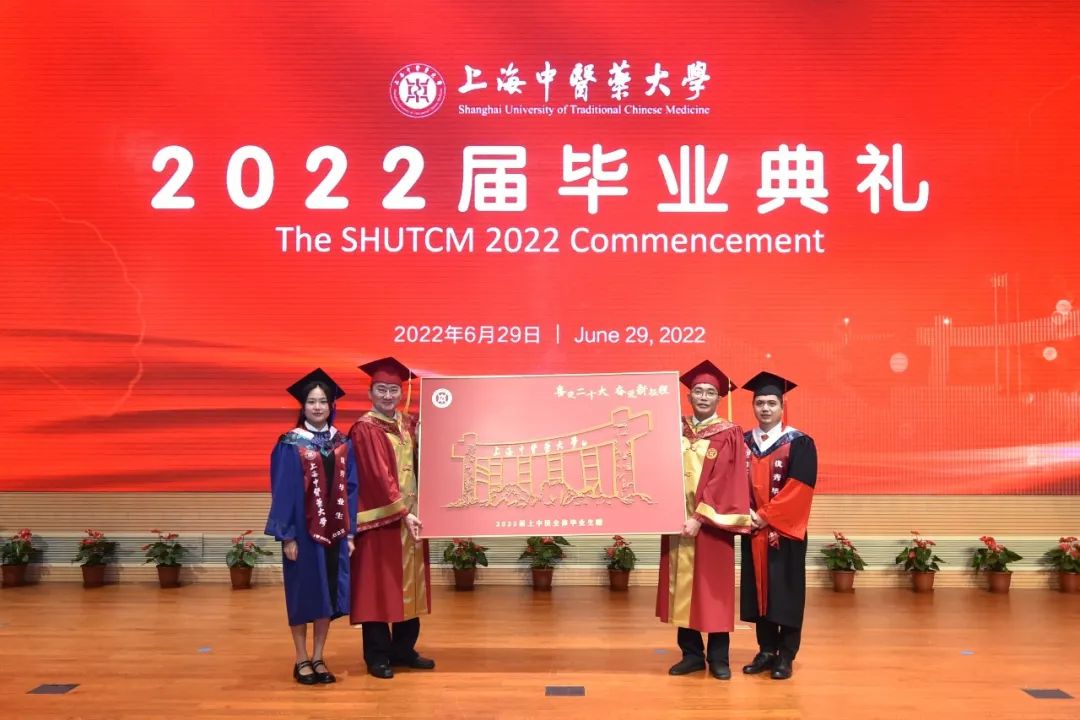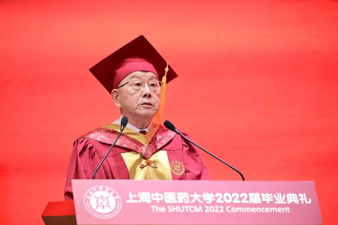 “阳光洒遍青翠的杏林,我们相聚在浦江之滨,努力弘扬中华的瑰宝,为人类托起浓浓的绿荫。”校歌声中,典礼迎来终章。