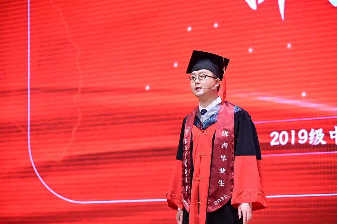 学生发言代表、硕士研究生郑卫丛来自岳阳临床医学院,他与上中医的关键瞬间都离不开“手”:针灸推拿讲求“手摸心会”,从手法学习、临床诊疗思维建立,到现代推拿创新能力培养和人文关怀陶镕,在团队的支持下,这双推拿人的手接过了全国针灸推拿临床技能大赛的奖杯;在参与抗疫的43天里,这双手用针灸推拿技术带领患者拥抱健康,展现中医人的独有魅力。