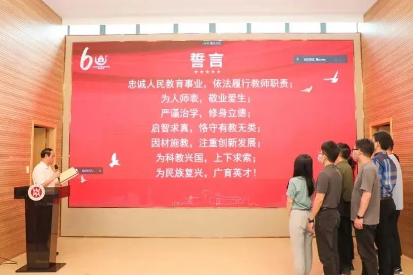 教育部高校 “双带头人”教师党支部书记工作室负责人、校工会副主席、中医诊断学科学术带头人何建成带领学院青年教师进行了宣誓仪式,通过宣誓进一步增强青年教师的责任感和使命感。