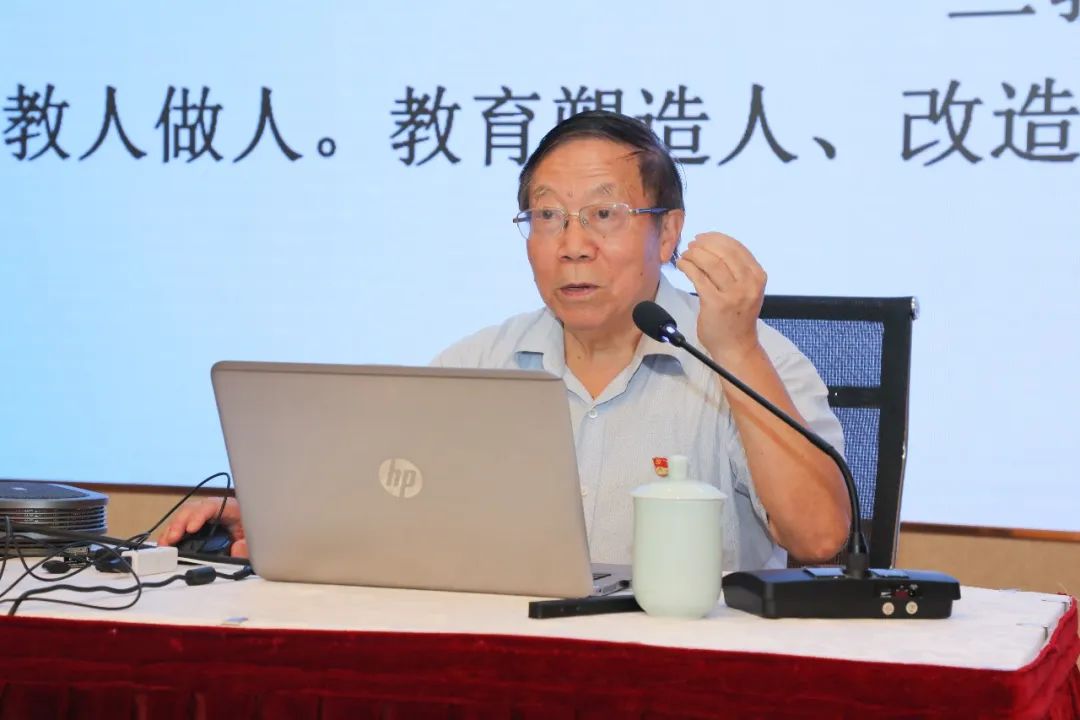 赠书仪式后,杨德广作“现代教师的教育理念和素质——怎样认识教育”专题讲座。他围绕“怎样认识教育、怎样认识教师、怎样认识大学”三个方面,阐述新时代教育的意义和规律、教师的使命与职业素养、现代大学的性质与功能等,引导广大教师转变教育观念,提升自身素养,按照有理想信念、有道德情操、有扎实学识、有仁爱之心的“四有”好老师标准严格要求自己,坚定理想信念,践行教书育人初心使命,提高教师思想政治和育人水平。