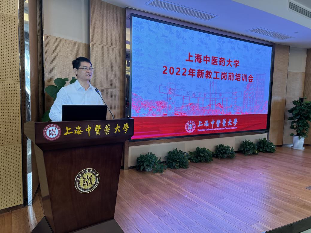 杨永清介绍我校建校以来发展历程和学校学科、附属医院的总体情况,以及学校地处浦东张江科创中心的区位优势,并通过解读“上海”“中医药”“大学”,勉励新教工孜孜追求“海纳百川、追求卓越、开明睿智、大气谦和”上海城市精神;立足“中医药”,坚持“四个面向”,在人才培养、人民健康、科学研究和国际化事业中彰显“中医药”的优势和特色;践行“大学”立德树人、全员全程全方位育人的使命担当。