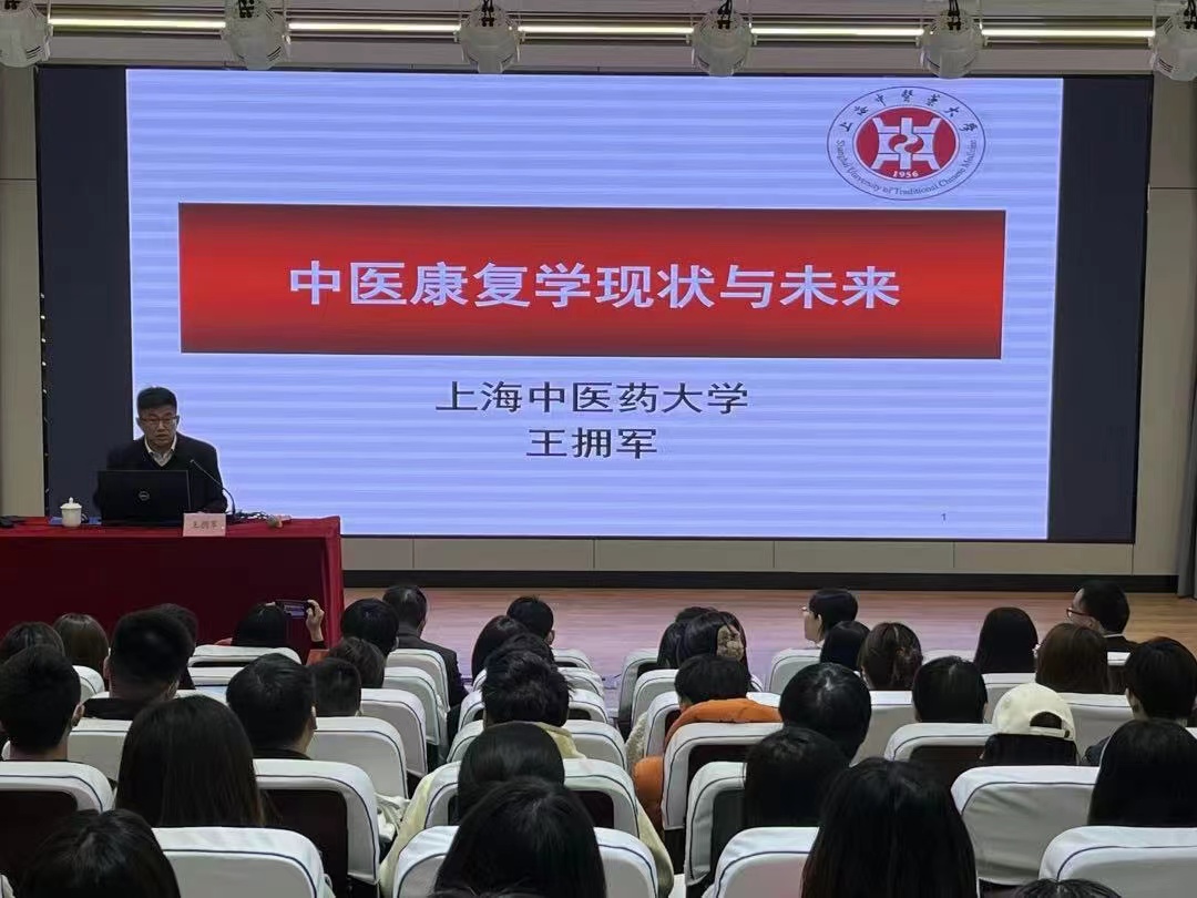 王拥军首先以“中医康复学现状与未来”为题,向学生们深入讲解康复行业的由来与前景,以生动翔实的案例和数据告诉学生们建立康复专业自信的重要性,勉励大家笃定投身康复事业。在讲座上,王拥军引经据典、妙语连珠,与学生们频频互动,现场气氛热烈。