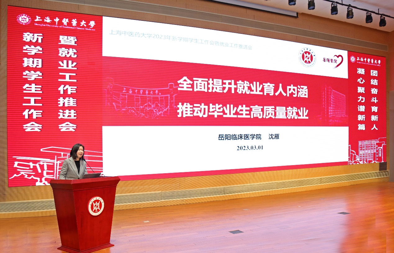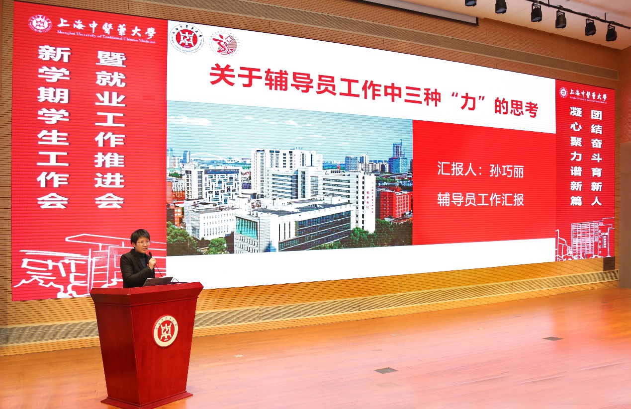 在新学期学生工作会暨就业工作推进会上,基础医学院、交叉科学研究院、护理学院、中药学院及岳阳临床医学院相关负责人分别围绕本科生思想政治教育、研究生思想政治教育、一站式学生社区建设及推进就业等主题进行交流发言。来自龙华临床医学院的优秀辅导员代表分享了对辅导员工作三种“力”的思考。