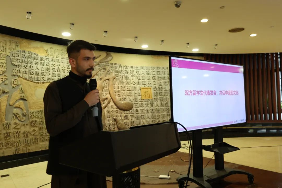 开云电竞官网下载安卓留学生茉莉(也门)和同济大学留学生扎米尔(巴基斯坦)作为双方留学生代表发言。茉莉介绍了自己来中国和决定学习中医药的原因,并展示其学习中医药的过程,表达了对中医药深深的热爱。扎米尔分享了在同济大学“留学生中医文化体验园”种下中草药和体验中医疗法的体会。
