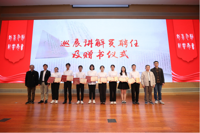 每个展品都承载着一个感人肺腑的故事。每个故事只有讲得精彩、讲得深入人心,才能让展览“活起来”“实起来”。基础医学院党委招募、组建、培训巡展讲解员,在锤炼会讲红色故事的硬本领上做“加法”,让红色展览把家国情怀根植于心。学生讲解员们通过集中培训、实地参观、查阅资料、研讨交流等方式在课后做了很多“功课”,并获得感悟:“我们也要像革命先辈一样去奋斗、去搏击,为属于我们的事业不断拓宽青春的赛道。”学校关工委副主任余小明、顾家柱,上海市档案局(馆)利用服务部主任张斌、副主任张姚俊为讲解员颁发聘书,并向学生代表赠送《初心的传承——中国共产党人的家风》《跟着档案看上海》等红色主题书籍,寓意“红色传承接力棒”传递到追逐大医强国梦的中医学子身上。在仪式启动前的师生座谈会上,余小明和顾家柱回忆开云电竞官网下载安卓2003年搬迁至张江“二次创业”的难忘经历,勉励学生为中医药事业的美好未来接续奋斗。