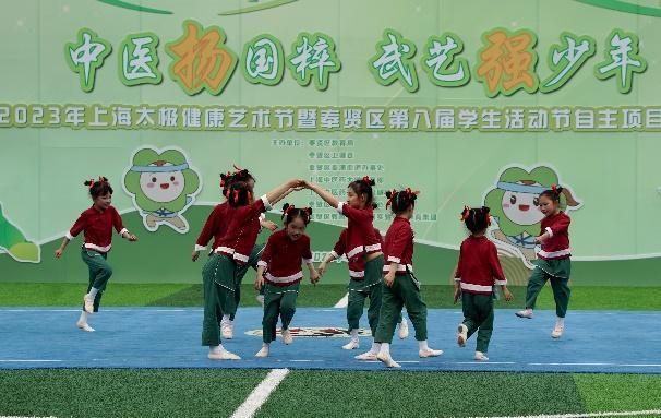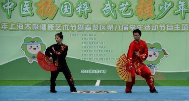 4月28日,我校与上海市奉贤区教育学院附属实验小学教育集团(以下简称“教院附小”)联合举办“中医扬国粹 武艺强少年”2023年上海太极健康艺术节暨奉贤区第八届学生活动节自主项目展示活动。奉贤区教育工作党委书记、区教育局局长施文龙,奉浦街道办事处主任李晓芬及相关工作负责人等;上海市中医药研究院综合办公室主任李洁,上海市气功研究所所长许峰,上海市武术协会副会长吴志坤,我校体育部教师,以及教院附小全体师生,奉贤区惠敏学校、育贤小学、四团小学、塘外小学、奉城第二小学集团校部分师生代表参加活动。展示活动在教院附小操场举行。通过举办内容丰富的系列活动,增进中小学生对中华优秀传统文化的了解与认同。