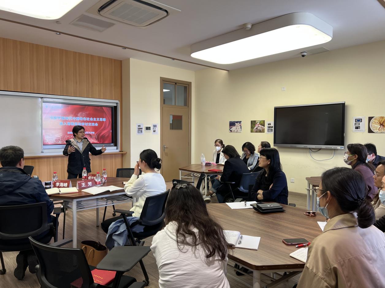 马克思主义学院各教研室教师分别介绍各自承担课程的内容和特点。与会教师就如何在专业课程中融入思政元素等问题展开热烈讨论。王芳指出,专业课教师加强政治理论学习,掌握思政教学方法,是专业课课程思政工作取得新突破的重要手段,两个学院应建立合作机制,为课程思政工作的进一步提升和发展建立桥梁。