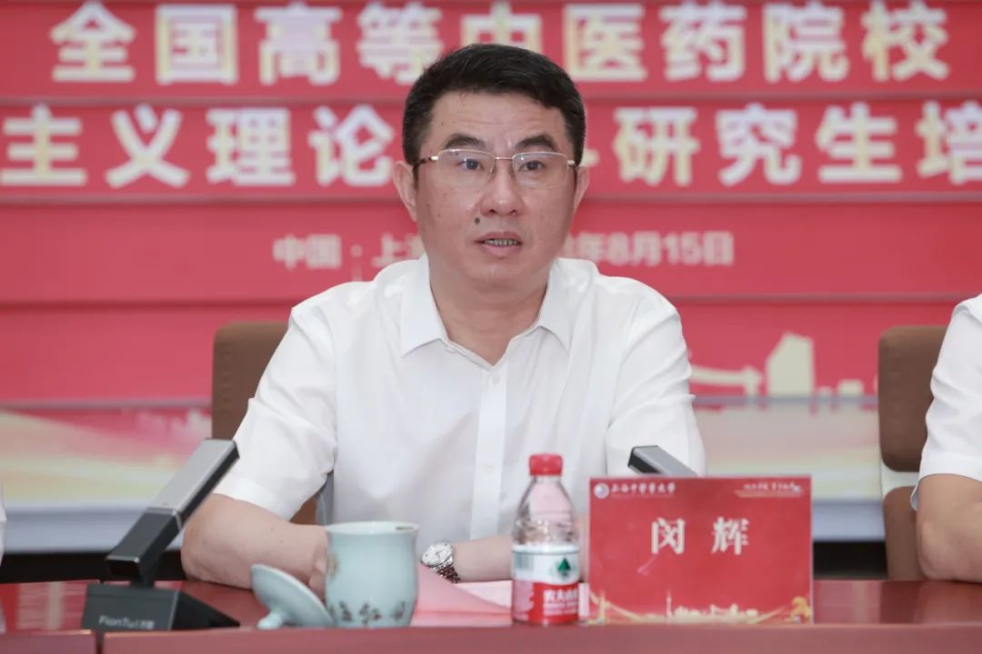 市教卫工作党委副书记、市教委副主任闵辉在讲话中指出,党的二十大报告提出,坚持和发展马克思主义,必须同中国具体实际相结合、同中华优秀传统文化相结合。上海市教卫工作党委、上海市教委高度重视挖掘好、发挥好中华优秀传统文化在马克思主义学院、马克思主义理论学科建设中的重要作用,今年以来,按照市委部署,遴选推出了一批上海高校重点马克思主义学院、特色马克思主义学院,明确要求进一步聚焦“两个结合”,特别是在学科建设、思政课建设、理论研究宣传中融入中华优秀传统文化。闵辉希望高校马克思主义理论工作者,坚守马克思主义魂脉,真正筑牢马克思主义理论学科的理论根基;坚守中华优秀传统文化根脉,凸显中医药文化特色;彰显学科交叉特色,培养具有中医药文化底蕴的马克思主义理论专业人才;坚持理论实践相结合,注重调查研究,把论文写在祖国大地上。