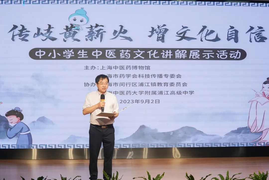 浦江高级中学校长刘坤和上海中医药博物馆馆长李赣、副馆长王丽丽出席活动。