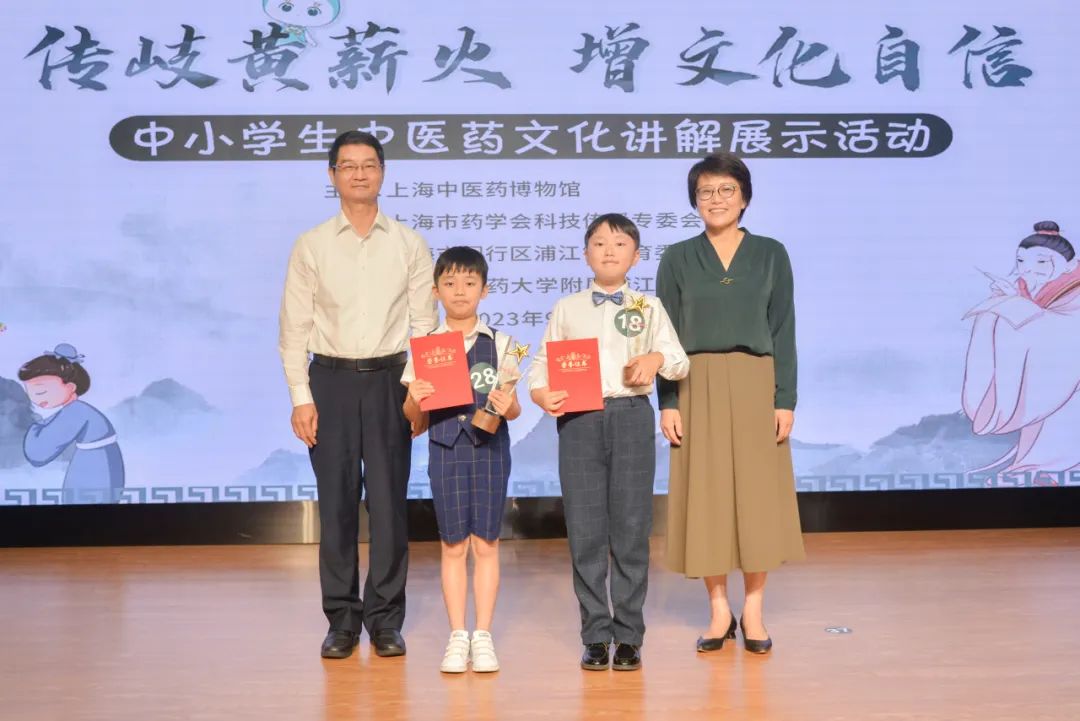 一等奖分别由蔷薇小学的庄梓祺和竹园小学的张皓诚获得。庄梓祺以“神奇姐妹花”为题,对金银花从生长过程到采摘炮制,再到性味归经和功能主治进行完整的讲述,层次逻辑清晰,获得评委的肯定。张皓诚以“我们的中医药”为题,对国家中医药管理局宣传片的讲解词作宣讲阐述,将宏大的中医历史和理念理解表达完整,着实难能可贵。蔷薇小学冯璟瑞“小橘子,大智慧”、蔷薇小学朱悦仪“七叶一枝花”、长岛中学马悦雯“医中之圣,科学之光”、东波小学方幼谨“跟着动物做体操之中华五禽戏”获二等奖。蔷薇小学孙歆瑶“中药五味知多少”、浦三路小学王品荃“中药人的左膀右臂-戥秤”、竹园小学徐梓茜“和而不同,我的远古朋友”、竹园小学白瑷瑄“天然小绿草,养生大活宝”、蔷薇小学程曦洋“也叫你贝贝吧!”、蔷薇小学许梓琳“我眼中的金银花精灵”、蔷薇小学姚钟毓“中草药的性格和脾气”、竹园小学大拇指中队“传承中医健康之道”获三等奖。后续中小学生们的优秀展示作品视频会陆续通过上海中医药博物馆的视频号进行推送,获奖的中小学生们得到了《小学生中医药传统文化教育系列丛书》作为纪念品,感谢上海科学技术出版社和上海教育出版社的鼎力支持。(上海中医药博物馆)