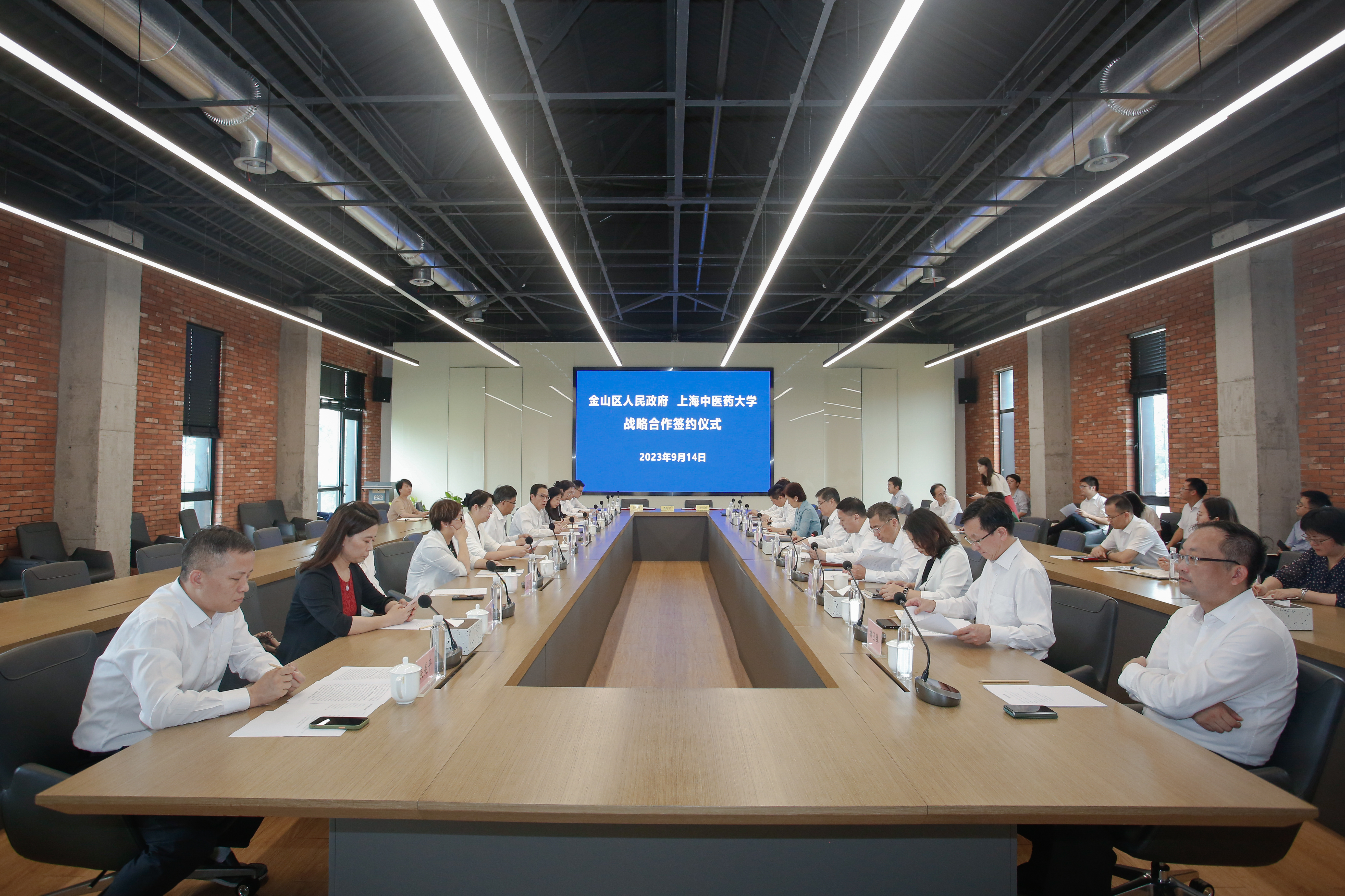 9月14日上午,我校与上海市金山区人民政府在金山区枫泾镇长三角路演中心签署中医药事业战略合作框架协议。校党委书记曹锡康,党委副书记、校长季光和金山区委书记刘健,金山区委副书记、区长李泽龙等共同见证,副校长舒静与金山区政府副区长曹婕签署协议。