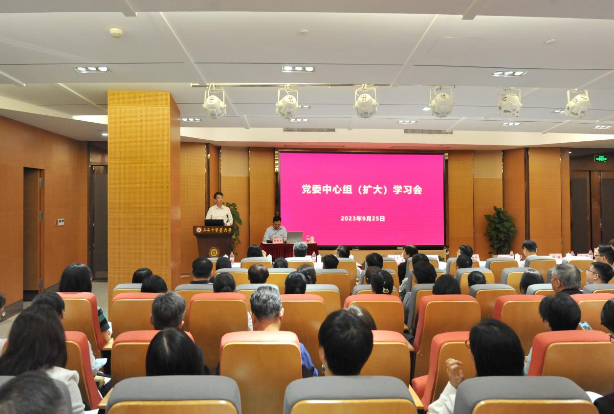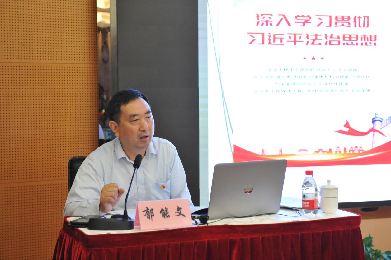 9月25日上午,校党委中心组(扩大)学习会在行政中心301会议室举行。市教委法规处处长郁能文受邀作《贯彻习近平法治思想 推进依法治校》专题辅导报告。校党委中心组成员,校本部教师党支部书记、组织员、辅导员、青年教师班主任、马克思主义学院教师出席。校党委副书记许铁峰主持学习会。