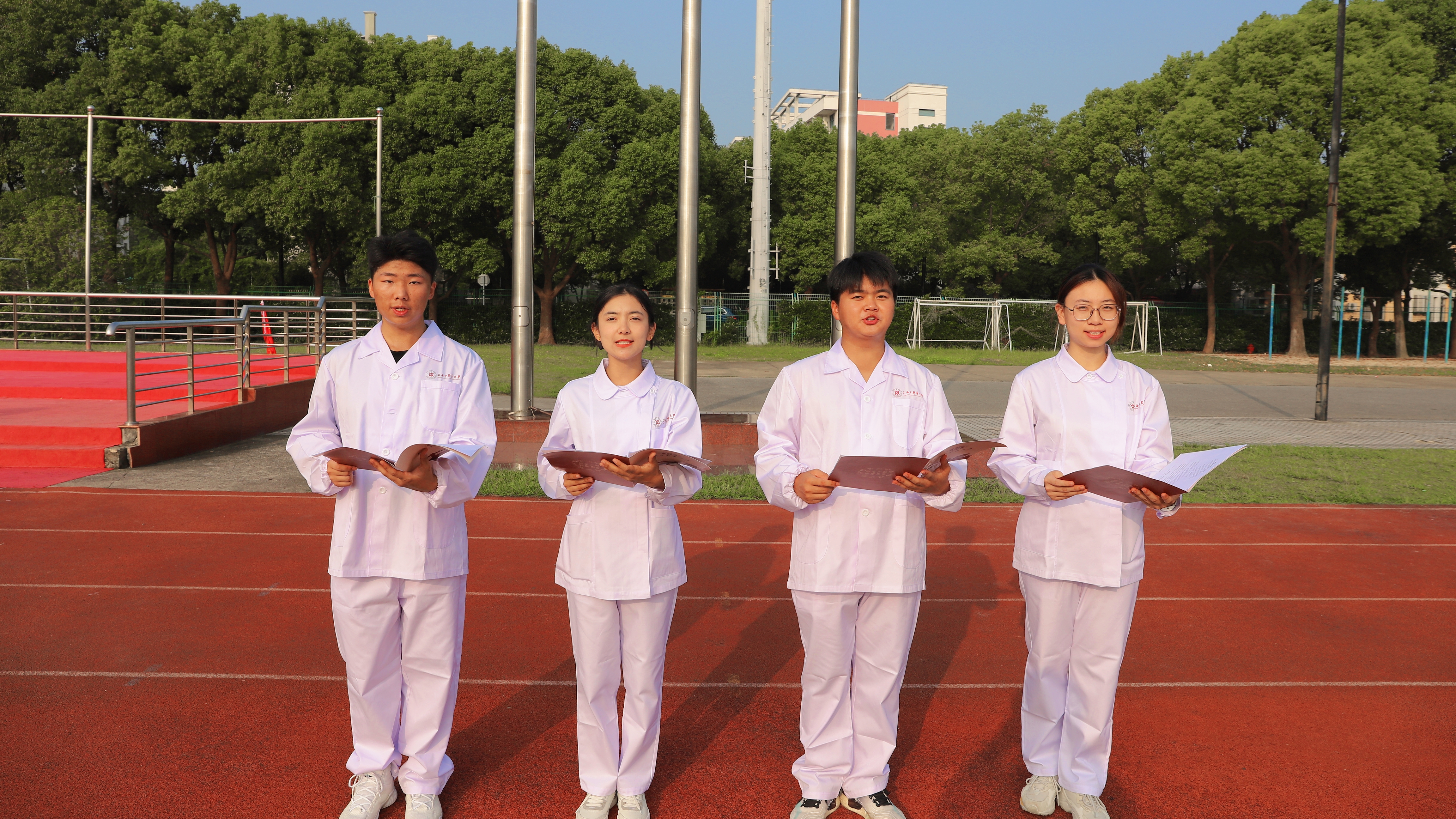 “我们生在红旗下,长在春风里。”学生代表朗诵原创诗歌《清澈的爱只为中国》,“中医青年薪火相传,笃行不怠,上下求索;杏林学子生生不息,以梦为马,一路向前。”他们发出了时不我待、只争朝夕、不负韶华、强国有我的青春号召,为祖国献上真情告白。