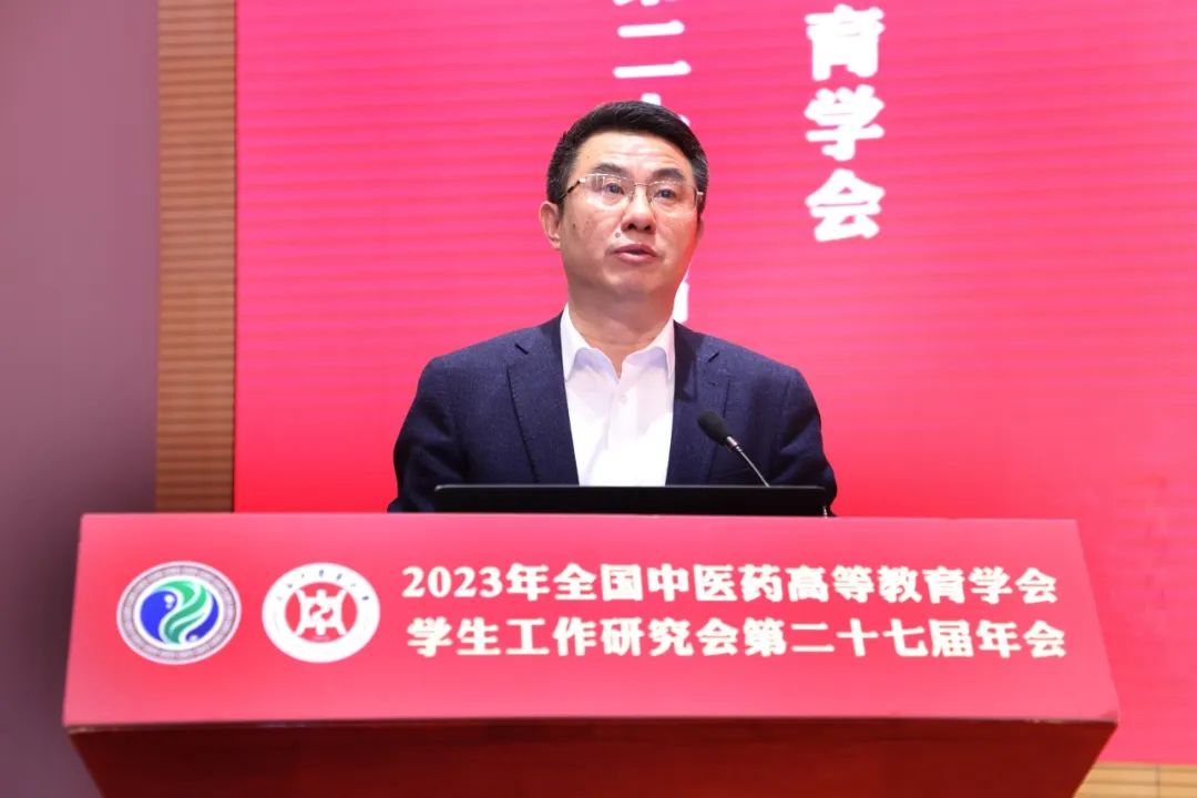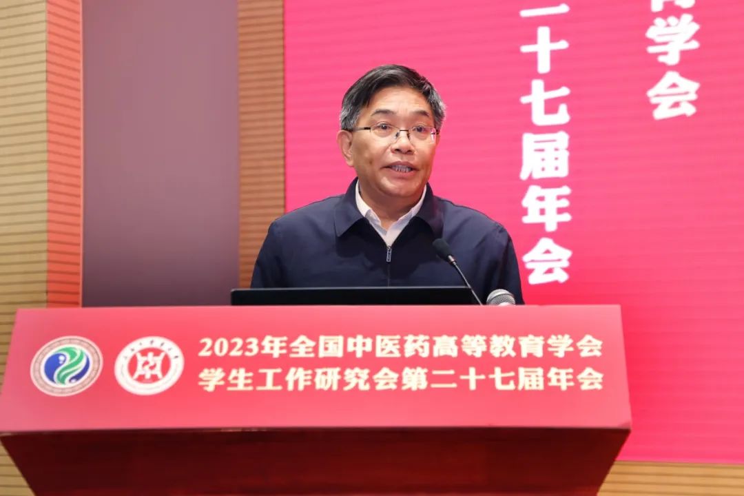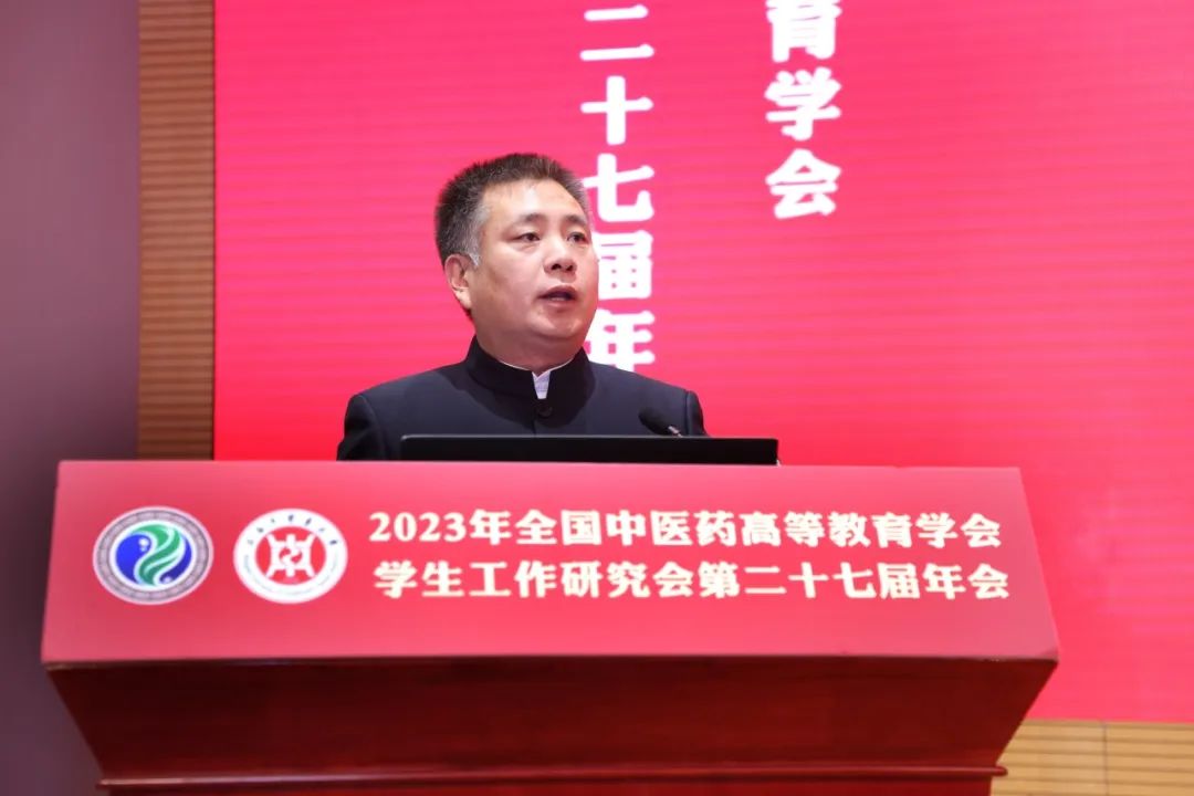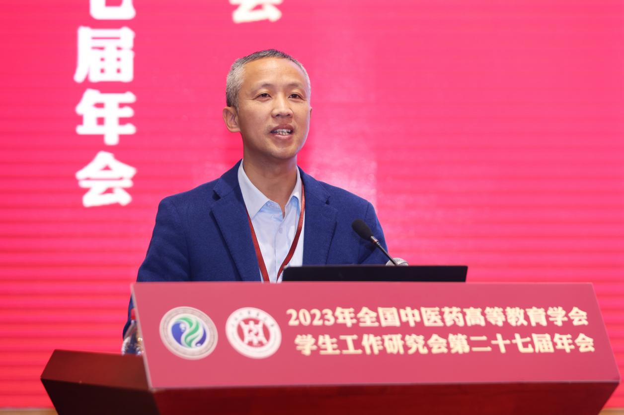 全国中医药高等教育学会秘书长、学生工作研究会理事长、北京中医药大学党委副书记张继旺在讲话中号召各中医药院校持续发挥中医药学科优势,大力弘扬中华优秀传统文化,落实好时代新人铸魂工程,打造中医药院校育人共同体,着力构建中医药高校思政育人与学生管理工作新常态,加强交流互鉴,贡献出中医药高等教育独特的智慧和力量。