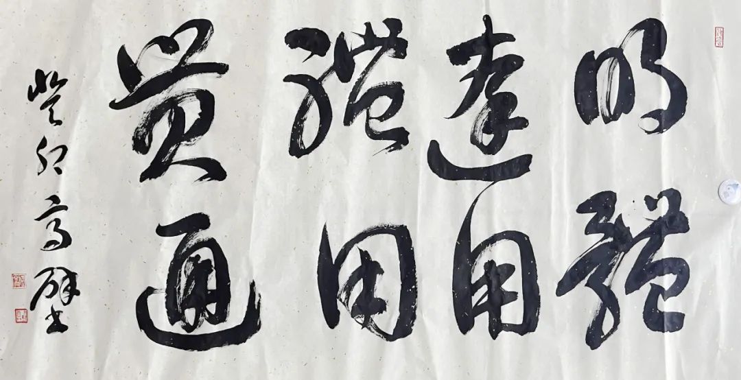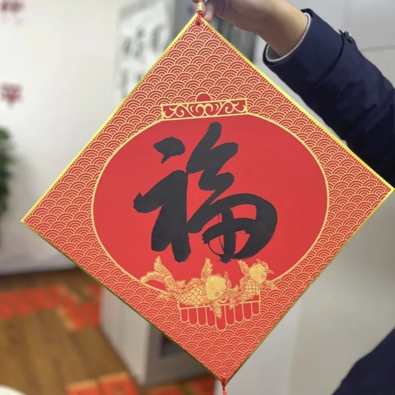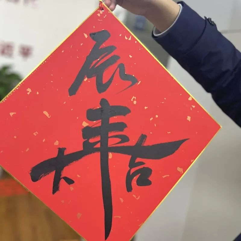 写春联、福字,是一种充满浓郁中国风的文化艺术活动,承载着中华民族的文化情感、民族记忆和美好希望。陆文耀启动“翰墨迎新”书法撰写活动。高壁为师生们讲解握笔和运笔的方法,并现场示范书写“福”和“龙”,用浓墨倾情为师生们送上新春祝福。应逸翔抽取三名幸运观众,根据他们的名字创作个性对联,“张灯结彩金龙来,聪颖聪慧财亨通”“花下化春三心归,木草龙马飞场来”“慧明慧觉慧春韵,珠光珠宝珠耀华”……这些红红火火的春联饱含美好的祝福,彰显着浓浓的喜庆氛围。