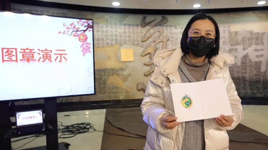 其中龙腾四海章是套章,需集齐4枚印章才能盖出完整的图案。现场师生观看完这枚印章的盖法后,亲手进行了实际操作,于是一张张龙腾四海的图画产生了,寓意着在龙年砥砺奋进、乘势而上。