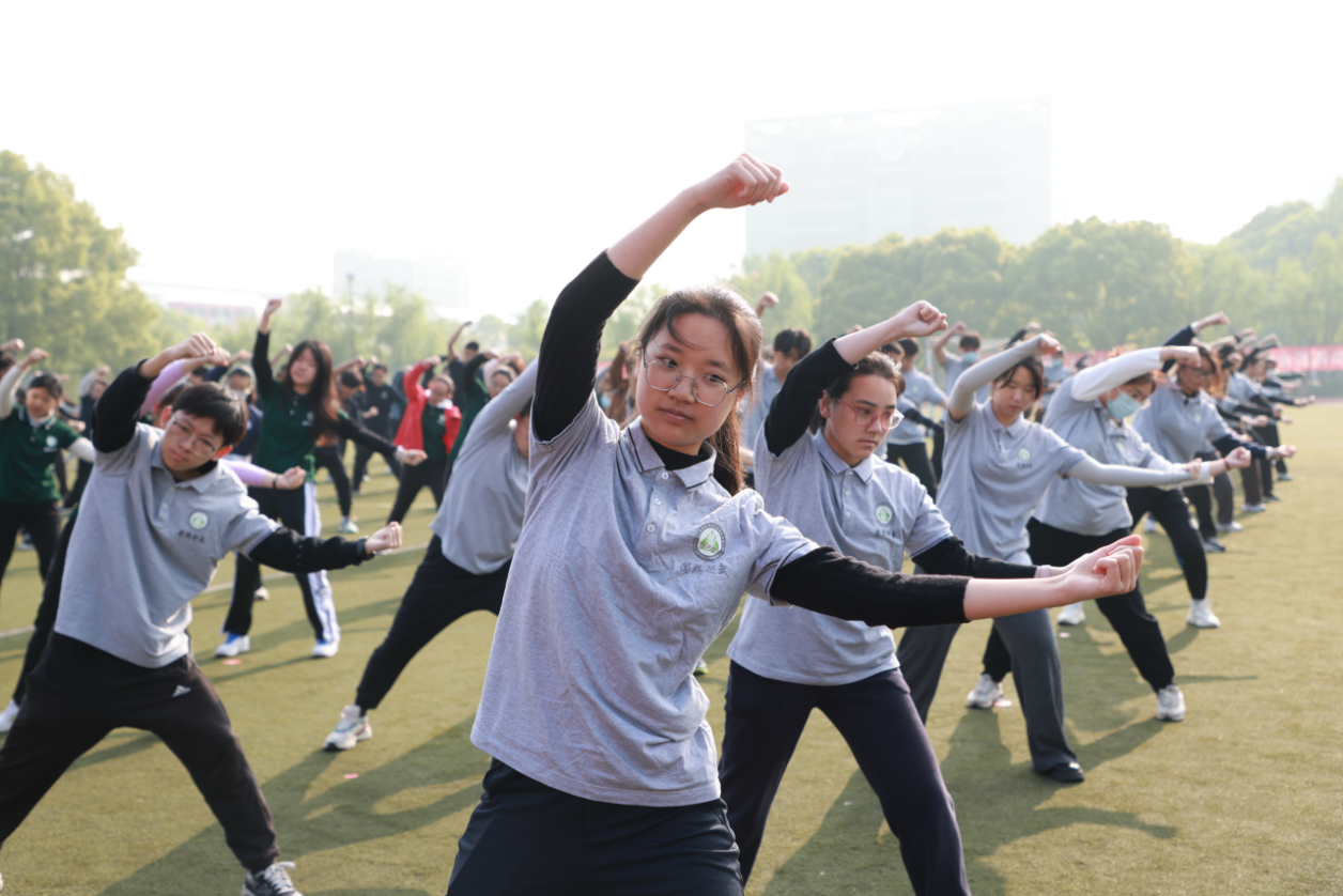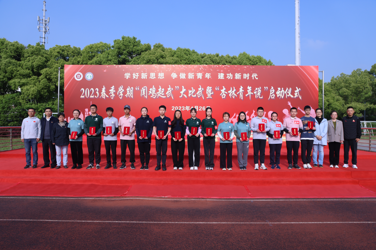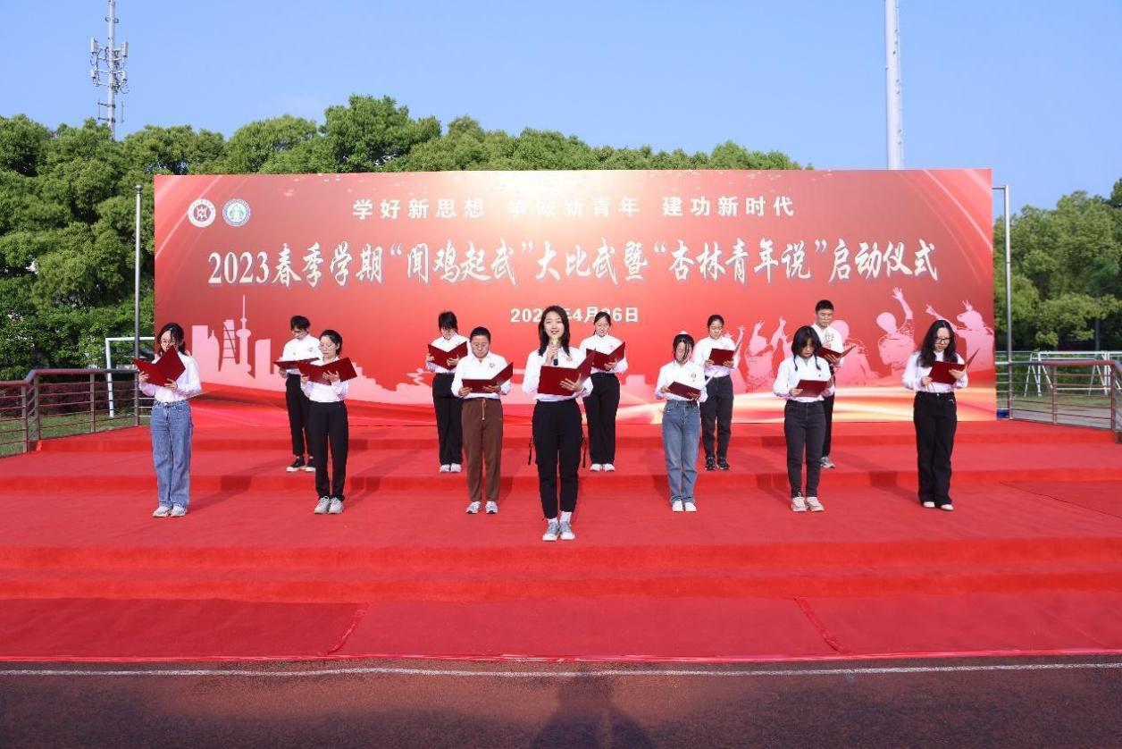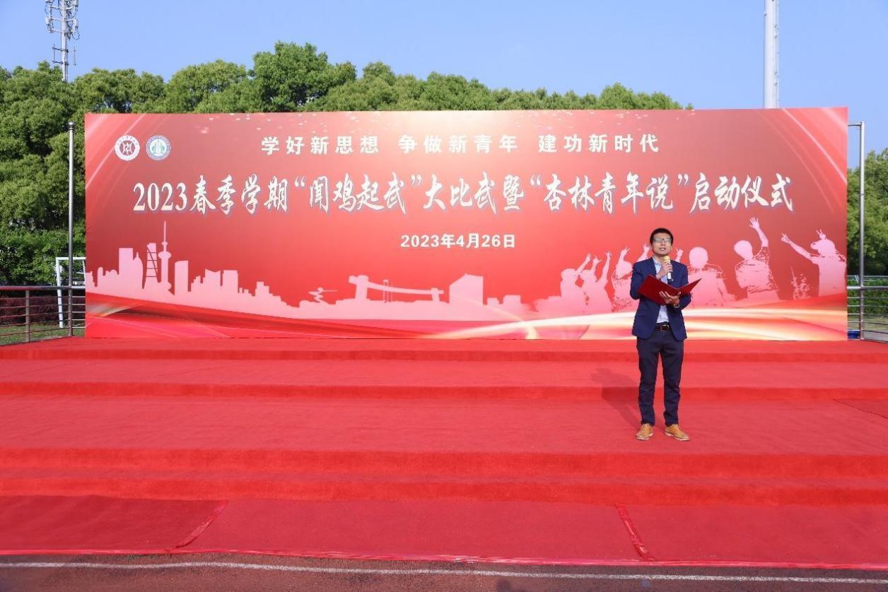 晨起闻鸡鸣,“武”动正青春。4月26日清晨,2023年春季学期“闻鸡起武”大比武暨“杏林青年说”启动仪式在学校体育场举行。基础医学院党委、体育部党支部、党建共建单位的党员代表、基础医学院2022级全体学生等近300名师生参加。活动由2021级中医学(屠呦呦班)常睿发和朱逸菲主持。