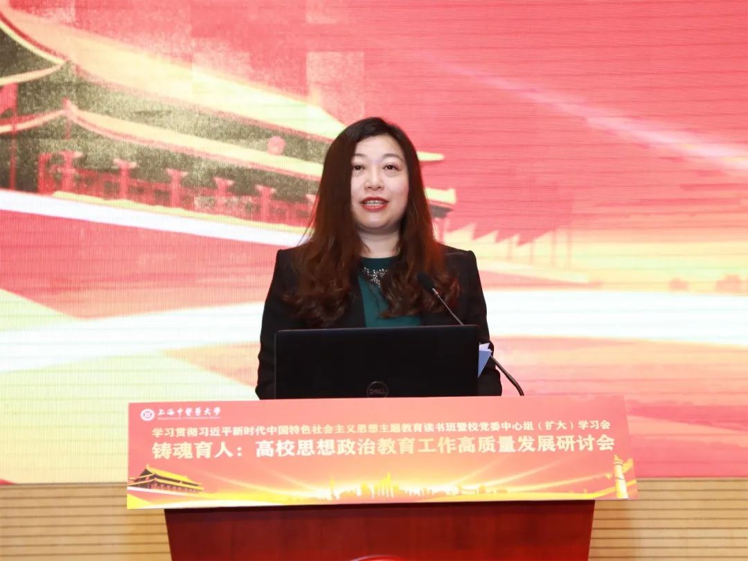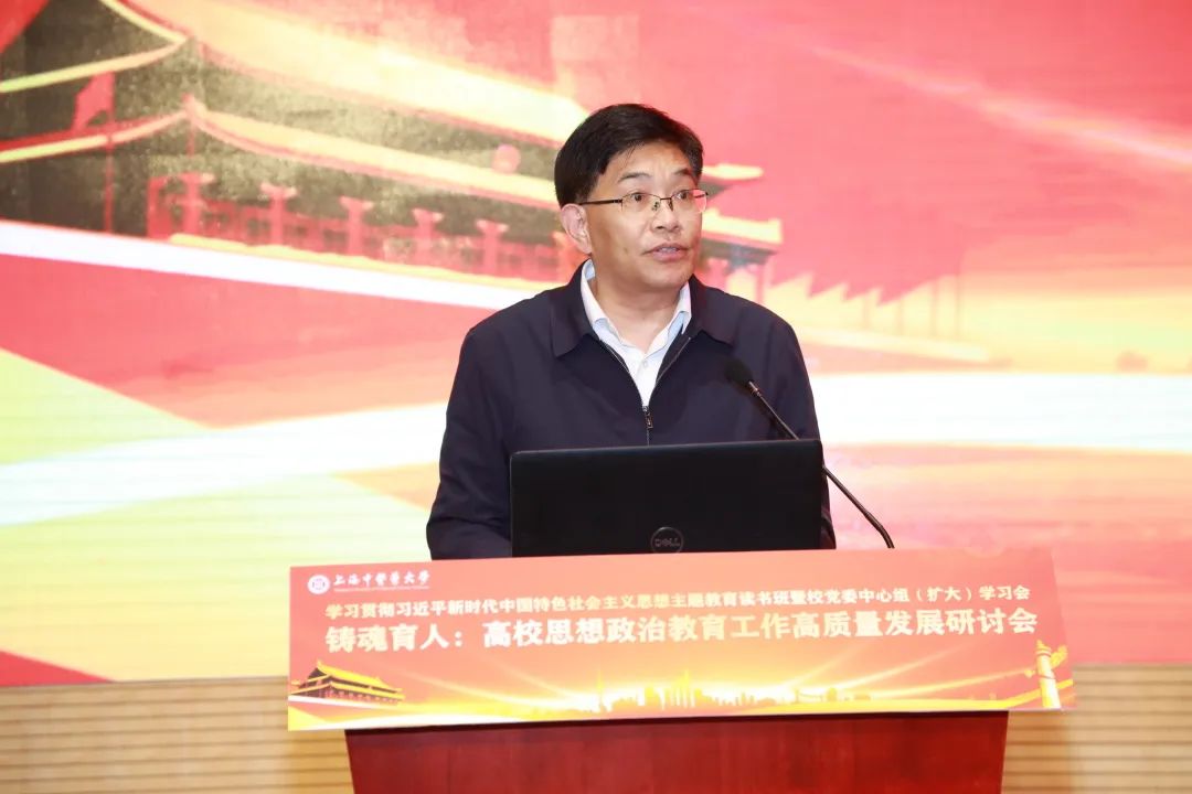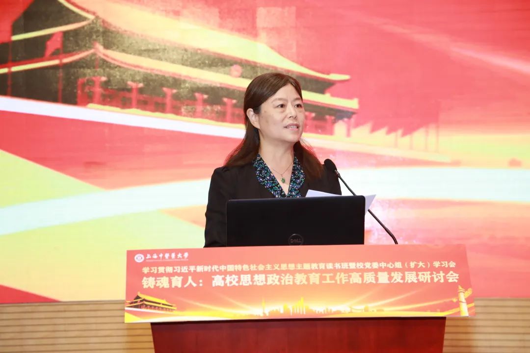 上海市教委德育处处长朱敏在致辞中强调,高校思想政治教育工作者,要以主题教育为契机,深入学习贯彻党的二十大精神,要注重学深悟透,推动理论学习往深里走,要注重知行合一,推动铸魂工程往实里走,要注重方法创新,推动思政工作往心里走。她介绍了上海市作为全国“三全育人”综合改革示范区,推动深化“三圈三全十育人”综合改革的创新做法,提出要聚焦重点任务,围绕大中小一体化、校内外一体化、知信行一体化,持续构建大思政工作格局,要用好“大课堂”,搭好“大平台”,建好“大师资”,站稳主阵地,讲好用好新时代“大思政课”。