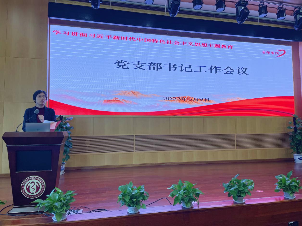 为深入开展学习贯彻习近平新时代中国特色社会主义思想主题教育,推进全面从严治党向基层延伸,充分发挥公立医院党支部保证政治方向、参与重要决策、服务人才成长、促进事业发展的重要作用,近日,岳阳中西医结合医院党委在医院学术报告厅召开主题教育工作推进会,会议由医院党委书记郑莉主持,党委中心组成员、党委职能部门负责人、各党支部书记和部分党员代表参加会议。