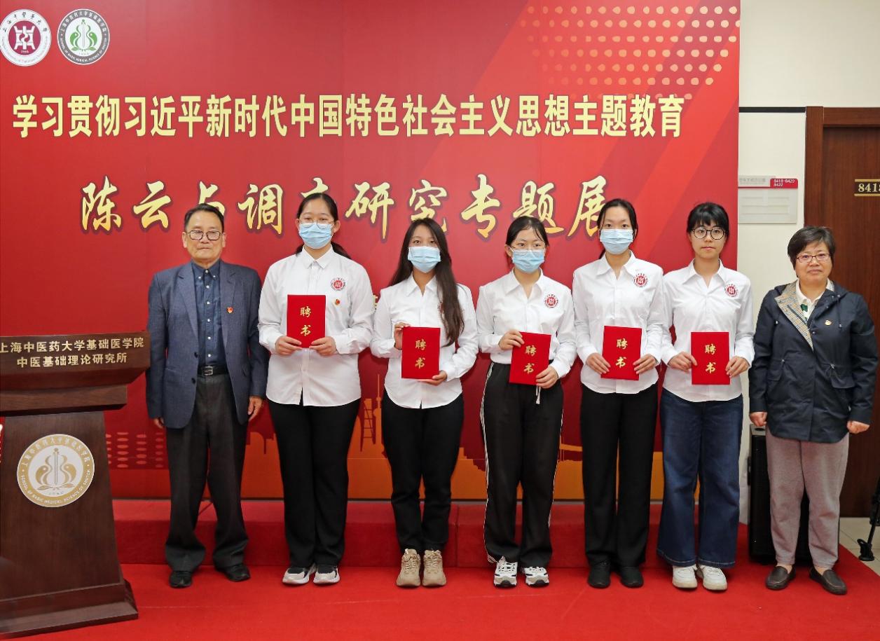 张建中、夏文芳为专题展讲解员颁发聘书。作为我校与中国中医科学院联合开展“高层次中医人才培养试点专项”的中医学(屠呦呦班)首位学生党员刘睍主动报名加入专题展讲解员队伍,她在发言中谈到:“中医药事业的传承创新发展同样离不开调查研究。正是屠呦呦及其团队在海南疟疾疫区的奔走,才有了青蒿素——这一份中医药献给世界的礼物。作为一名学生党员讲解员,我将深入学习领会习近平总书记关于调查研究的重要论述,讲好陈云等老一辈革命家深入基层调查研究的故事,用好调查研究这个‘传家宝’,努力探寻中医药事业发展的源头活水。”