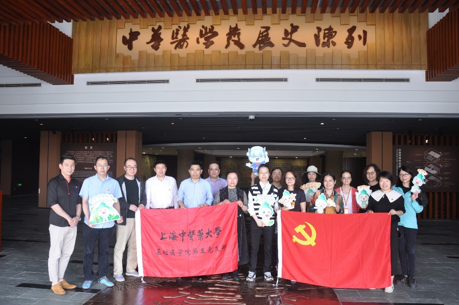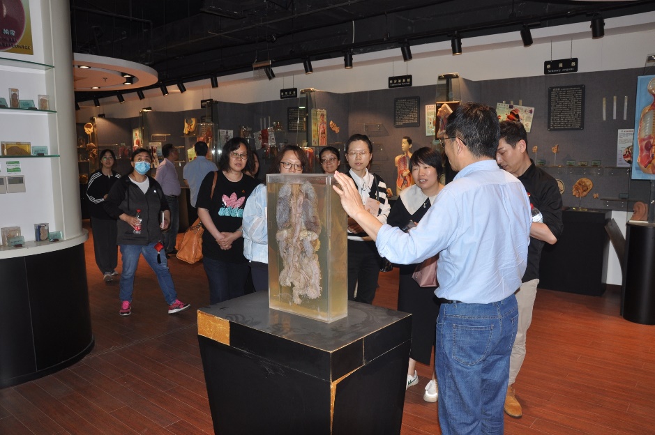 在上海中医药博物馆,一行人参观学习中医学在各个历史时期取得的主要成就。从中国最早的医学典籍《黄帝内经》,到被西方国家称为“东方医学巨典”的《本草纲目》;从传承两千多年博大精深的经络学说,到源远流长的阴阳五行原理;浮雕中“精气神”三个字便是中医之本,反映着一个人的健康状况,也体现了中国哲学的宇宙观和生命观。博物馆的镇馆之宝清乾隆御制针灸铜人更是引起很多教师党员的兴趣,纷纷表示当前正是中医药发展的好时机,并探讨如何将针灸应用到现代科学研究工作中去,实现传承中的不断创新。