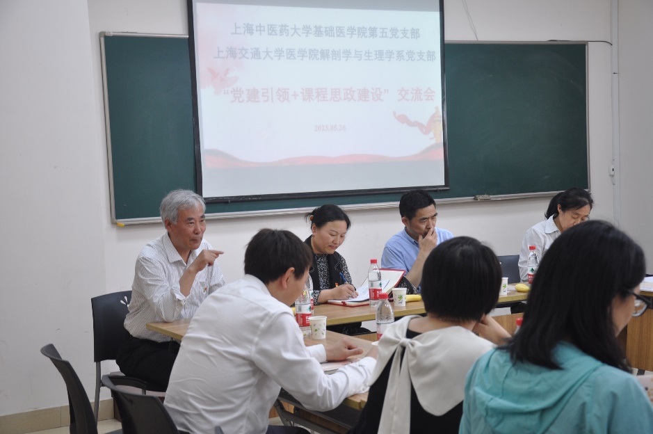 在交流座谈中,双方支部书记邵水金和罗萍分别介绍了支部基本情况。我校基础医学院教授张黎声围绕如何将马克思主义基本立场、观点和方法融入到解剖学课程教学之中,做到“同向同行”,实现教学的思想性、科学性和先进性进行经验交流。上海交通大学医学院解剖学与生理学系支部党员、少数民族骨干教师木合依提 · 阿地力艾力以“28岁的追梦人——以青春筑梦,用行动育人”为题进行交流发言。
