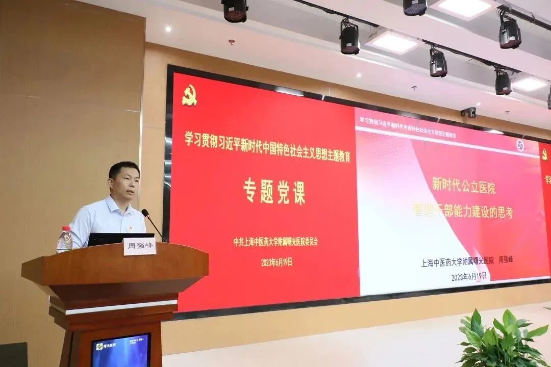 为进一步推动学习贯彻习近平新时代中国特色社会主义思想主题教育走深走实,引导鼓励医院职能部门干部切实提高能力本领、强化服务意识,曙光医院党委于6月19日中午在东院科教楼一楼学术报告厅召开主题教育专题党课。专题党课以《新时代公立医院管理干部能力建设的思考》为题,党委书记周强峰担任主讲人,由党委副书记、院长房敏主持。开云电竞官网下载安卓主题教育第一联络组组长、校党建督导员陶建生教授和校主题教育第一联络组成员、康复医学院党总支组织员周家伟到会指导。医院党政领导班子成员、职能部门负责人、院青年管理骨干培训班学员等认真聆听了党课。
