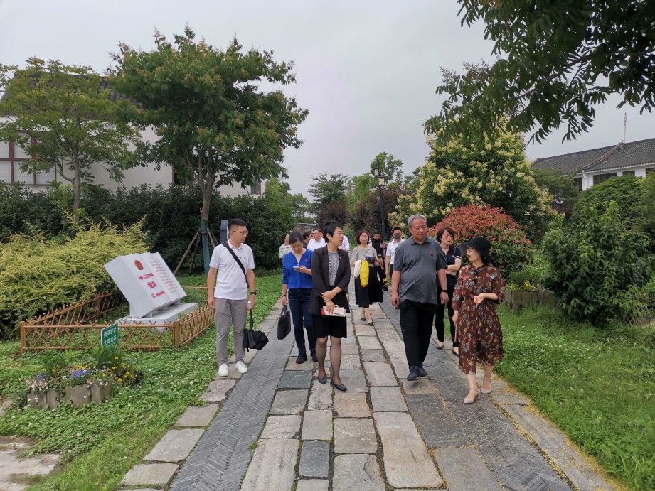 奉贤区吴房村党支部宣传委员吴丹红介绍了吴房村的历史并陪同参观。吴房村位于奉贤区青村镇,至今已有300多年历史,是上海第一批9个乡村振兴示范村之一。近年来,吴房村紧紧抓住上海市乡村振兴示范村创建战略机遇,在村级思想引领、精神面貌、人居环境及社会治理等方面开展全方面、多层次、宽领域的探索及实践。