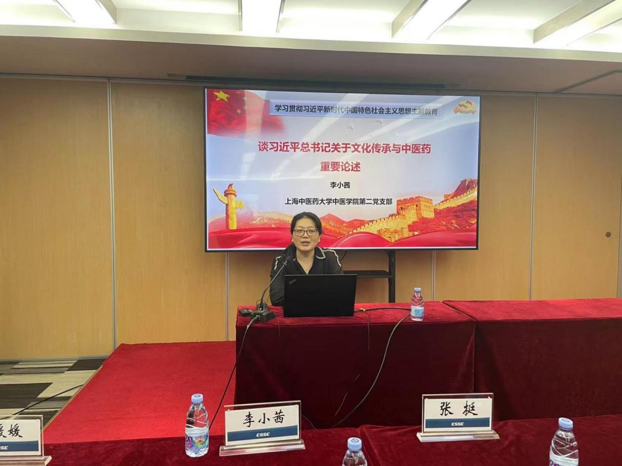 随后,李小茜作题为“学习习近平总书记关于文化传承与中医药重要论述”的主题教育专题党课。她从习近平总书记在文化传承发展座谈会上的重要讲话精神说起,指出了习近平总书记对中医药工作作出一系列重要论述对中医药发展的重要指导意义,同时通过实例讲解习近平总书记如何运用中医术语阐述治国理政相关内容李小茜强调中医药是中华优秀传统文化的杰出代表,传承和弘扬中华优秀传统文化需要大力发展中医药。