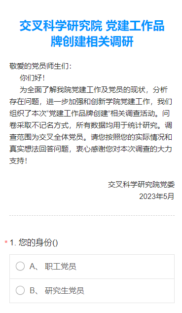 学习贯彻习近平新时代中国特色社会主义思想主题教育开展以来,交叉科学研究院积极行动,对主题教育进行动员部署,把调查研究贯穿主题教育全过程,着力解决研究院师生最关注、最直接、最现实的问题,确保调查研究取得实效,推动主题教育走深走实。