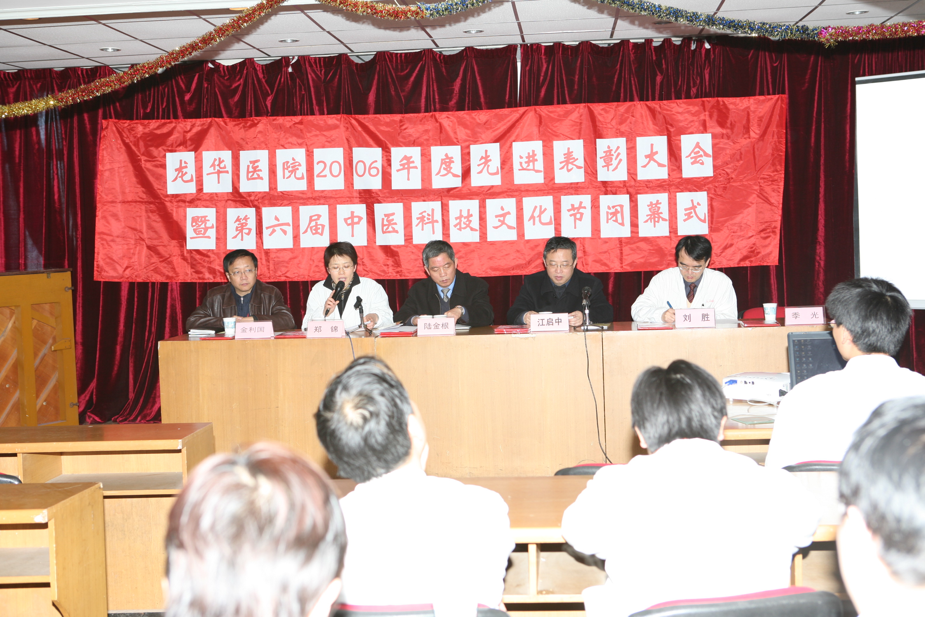 江启中书记宣读了《关于表彰龙华医院2006年度先进工作者、先进集体及精神文明创建好事的决定》,大会表彰了2006年度我院8个先进集体、4个表扬科室、65名先进工作者、10件精神文明创建好事、10件精神文明创建好事提名奖。