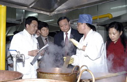 高度评价岳阳医院中医药早期介入临床诊疗模式 5月9日上午,卫生部副部长兼国家中医药管理局局长王国强专程到全国重点中西医结合医院建设单位岳阳医院进行调研,认真考察中西医结合工作开展情况。国家中医药管理局闫树江司长、高思华司长、许志仁巡视员、洪净副司长、李昱处长以及上海市卫生局马强副局长、季伟苹处长等一同参加调研。 王部长一行听取工作汇报后,在我院张秋娟院长、房敏书记陪同下,察看了病房楼中西合璧的环境文化、传统中医特色“膏方”的制作加工流程,仔细聆听严隽陶、东贵荣等专家介绍重点学科的建设进展,与康复科就诊病人、针灸科进修外籍医师亲切交谈,并详细了解中西医结合康复诊疗、电子病历医生工作站以及中西医结合疗效评价、质量控制等工作情况。 在调研中,王部长一行深入病房、门诊、中药房,与岳阳医院干部职工群众亲切交流,代表卫生部和国家中医药管理局向临床一线医务人员表示亲切问候。王部长充分肯定了岳阳医院在保持中医特色基础上开展中西医结合工作的思路和做法,特别对中医药技术方法早期介入临床诊疗的模式给予了高度评价,要求岳阳医院认真抓好中西医结合内涵建设,找准几个优势病种早期介入、综合应用中医诊疗技术,努力出规范、出标准,切实起到示范带动各级中西医结合医院建设发展的作用。 ▲王部长莅临岳阳医院调研考察 ▲王部长亲切慰问一线医务人员 ▲王部长一行在学术报告厅听取汇报 ▲王部长一行听取工作汇报 ▲王部长在针灸病房与外籍进修医师交谈 ▲张秋娟院长向王部长汇报开展中西医结合疗效评价工作 ▲王部长听取电子病历汇报 ▲王部长查阅膏方脉案 ▲王部长认真察看膏方制作流程 |