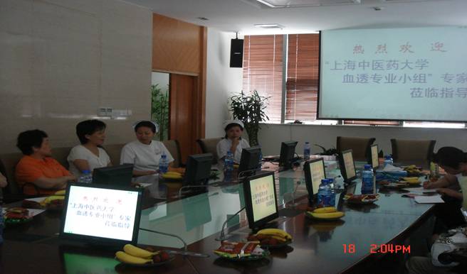 2008年7月18日大学血透专业护理组在组长单位��龙华医院举行了第一次交流活动。参加专业组活动有五所附院的血透室护士长、护士,大学医管处的王珏副处长、普陀区中心医院护理部牛主任和龙华医院护理部周主任。