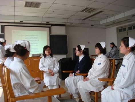 2009年2月25日下午由医院管理处牵头的护理英语沙龙活动在曙光医院举行,沙龙活动内容为结肠造口护理教学查房。由曙光医院主持查房,其它四所附属医院护士参与护理诊断的讨论,互动性好。英语沙龙活动的开展有利于各附属医院护士护理英语能力的提高,为中医护理走向国际奠定基础。