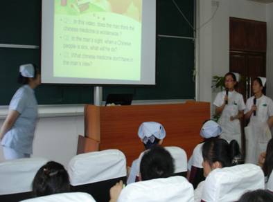 活动分为三个议程,首先播放世博会的主题曲和活动准备阶段的视频;然后根据视频内容回答问题;最后针对在视频中讨论的三个主题,护士们发表了自己的看法。