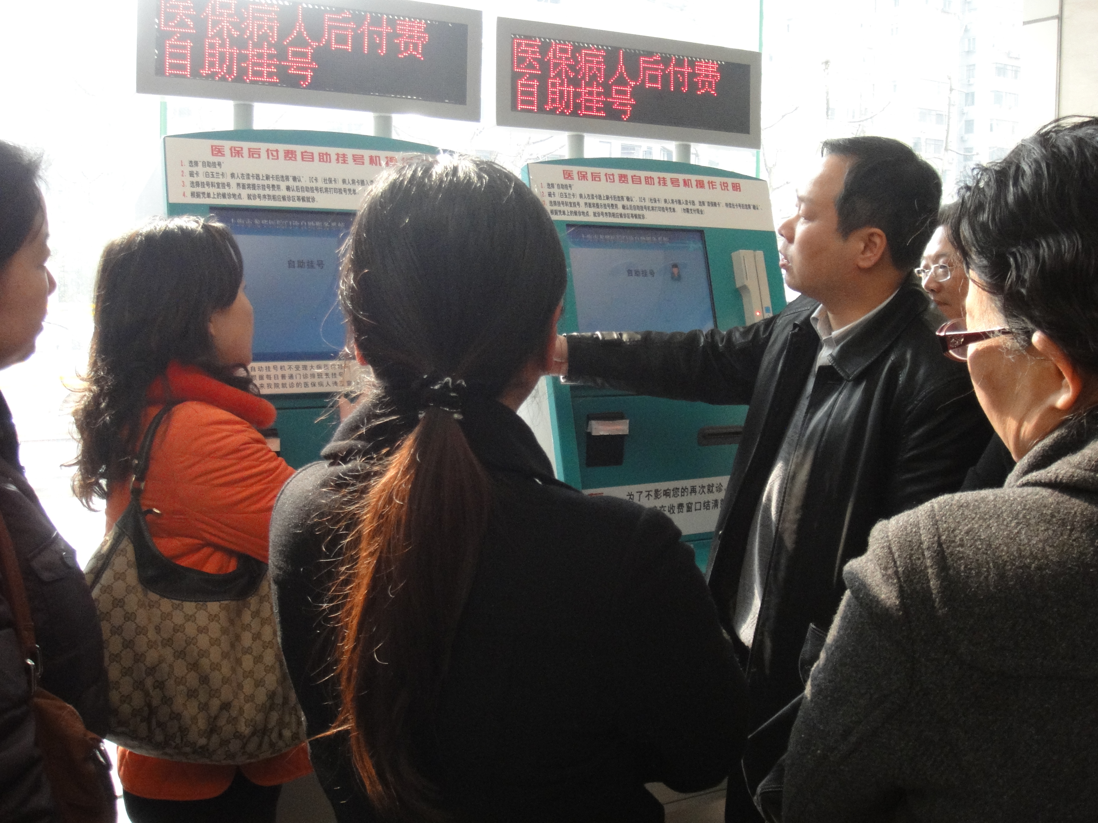 接着,门办主任们来到了“先就诊后付费”为试点单位的龙华医院。沈平主任向大家介绍了“后付费”试点工作已达到了减少病患排队等候次数、提高窗口利用率的初衷。该模式试点人群是城镇医保及城镇退休医保人员。病人在自助机上挂号后即可以就诊,检查和治疗付费先刷卡,然后在完成整个就诊流程后一次性付费记帐即可。为确保该模式能正常运行,医院又设置了电子申请单,确保各就诊环节畅通。