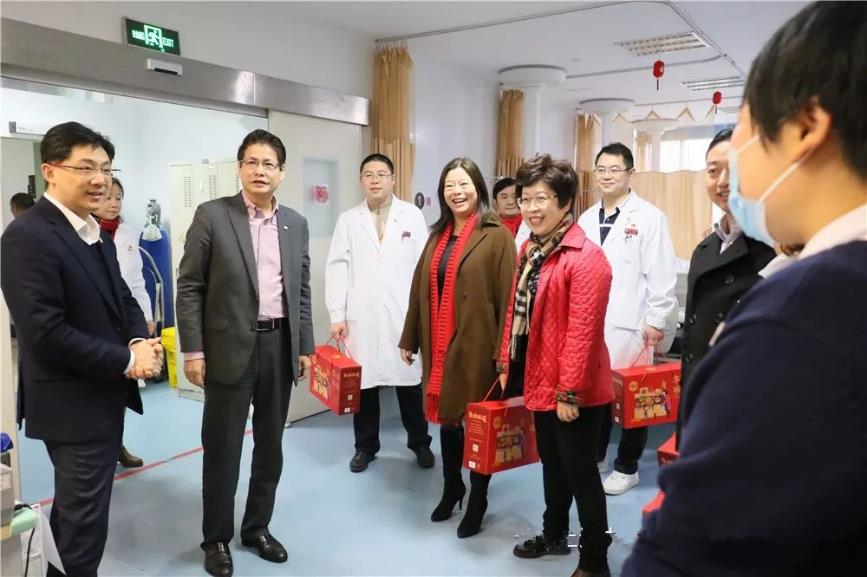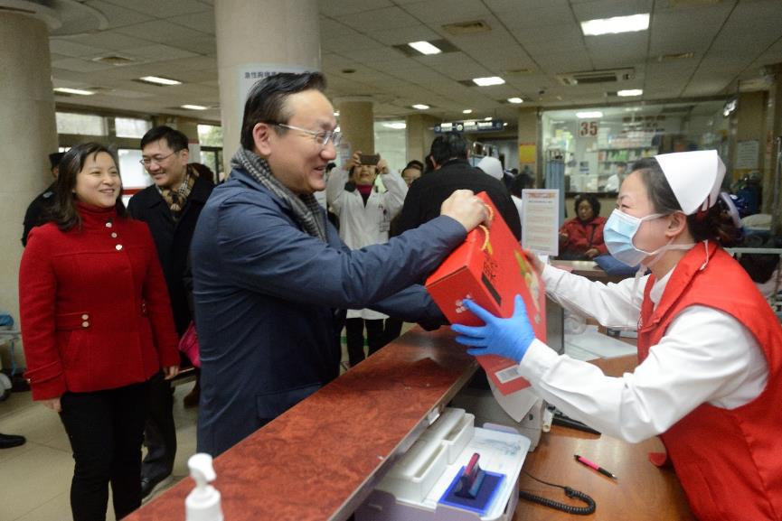 在各附属医院的急诊科、ICU、儿科门急诊、急诊收费处、药房和部分病房,“新年好!同志们辛苦了!给大家拜个年!祝大家身体健康!”每到一处,校领导都热情地与坚守岗位服务患者医务人员亲切握手,嘘寒问暖,送上充满喜庆的慰问品,向他们致以最诚挚的节日问候和美好祝福。