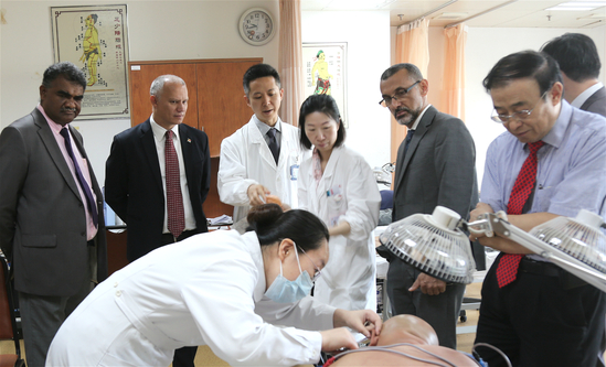 让-保罗・亚当部长一行还参观了附属龙华医院骨伤科、康复医学科和药房,对中医药诊疗特色和临床应用有了更深入的了解。(医管处)
